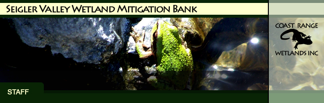 Leigh has a Bachelor of Science Degree in Engineering from the University of California, Davis. While currently owning and operating his own engineering firm, ZZ Engineering, he also serves as company engineer for Coast Range Wetlands both managing and assisting in the design and development of the Seigler Valley Wetland Mitigation Bank.  He has developed extensive skills in plant taxonomy and ecology both in his role in Coast Range  Wetlands and while assisting our sister company, Northwest Biosurvey, staff in field surveys and vegetation mapping over the past six years